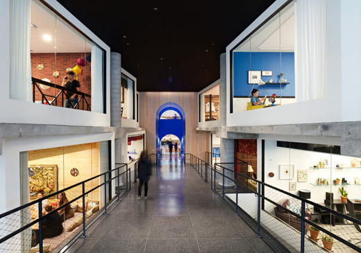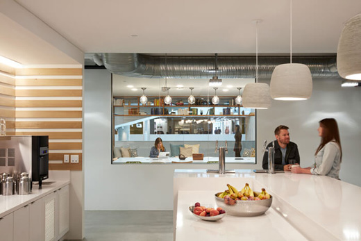 设计团队将Airbnb社区的概念和组件融入到这个空间中。其主要的工作空间被划分为16个具有相同组成部分的社区,每个社区最多有50个人。每一个社区都有一个大的桌子空间,有大的定制的公共桌子和站立式办公桌,三个电话室,个人存储间和一个15到30个人的车库;一间会议室,可以根据需要进行调整,打开或关闭一间有车库门装置的房间。