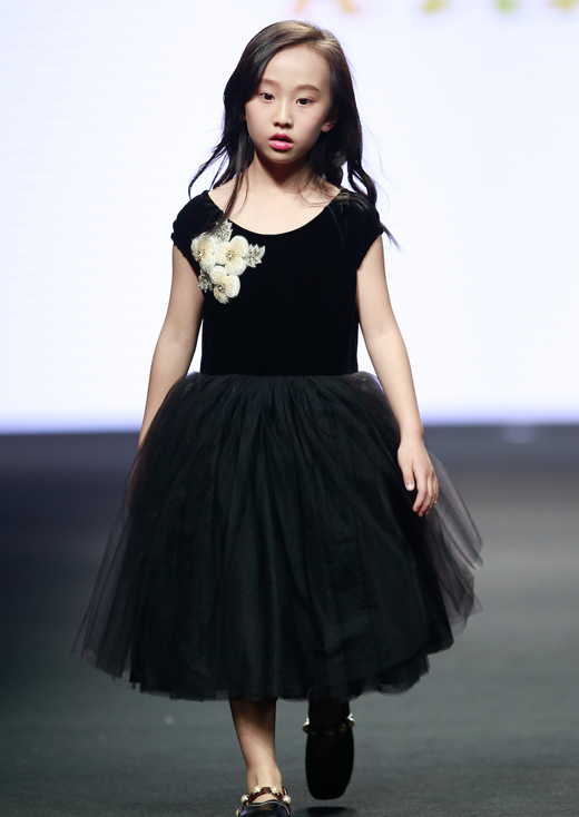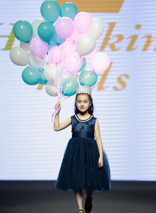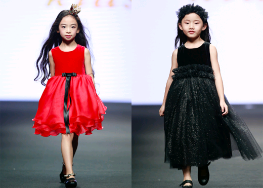 两位小模特身着Hanakimi高级定制礼服,头戴Lovecrush蕾丝皇冠火热开场。金色和红色的搭配,象征着尊贵和希望。两位小模特,一位如高贵典雅的女王,另一位犹如天真活泼的小公主,这正是Hanakimi的品牌内涵。
