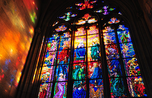 在参观历史悠久的西方建筑时,例如教堂或是伊斯兰教的清真寺,我们常常被色彩斑斓绚丽的彩绘玻璃装饰锁住心神。这种世界艺术史上的阆苑仙葩,一直以极具韵味的身姿独占鳌头。而这种独特的手工艺起源于欧洲中世纪的哥特式教堂。在彩色玻璃工艺发展的初期,因无法直接制造出纯净通透的大块玻璃,所以当时匠心独具的工匠参考了拜占庭教堂的玻璃马赛克,利用彩色玻璃在窗户上镶嵌出一幅幅意蕴纷繁的图画,从而组成颜色缤纷的圣经故事。因为教堂内光线昏暗,主要的采光还是靠窗户。当日光透过玻璃时光线的反差加大,在彩色玻璃的作用下产生瑰丽绚烂的景色。渐渐的,彩绘玻璃窗已经成为哥特式教堂建筑不可缺少的组成部分。“没有了阳光,哥特式教堂中的彩绘玻璃也就失去了它的全部意义。”光线在基督教中一直被看作是上帝所赐,人们在所有造物中寻找神圣光线的痕迹实际上也是寻找上帝之迹。彩绘玻璃所体现出来的光耀之美,对于当时的大多数人来说就成为了上帝本源的暗示,一座与上帝灵通的桥梁。在这种感知论视觉美学理论的印象下,彩绘玻璃艺术所凸现出来的光线作用,自然而然地被罩上了一层神圣的外衣,同时也起到了向不识字的民众宣传教义的作用,具有极高的艺术价值。