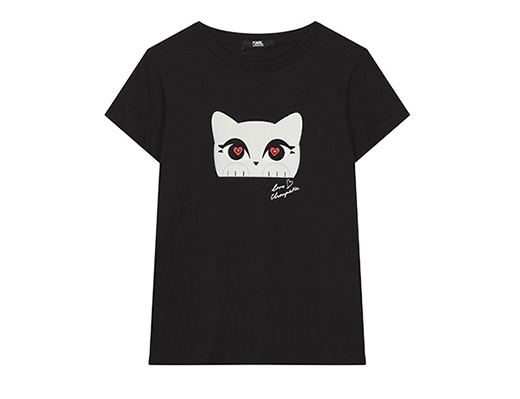 Karl Valentine系列成衣中,运动衫、T 恤及亚麻背心上均饰有 Karl Lagerfeld 及Choupette 的卡通形象。该系列的配饰则包括心型斜挎包、迷你双肩背包以及印有Choupette 卡通图案的拉链手包。小件配饰则包括两款巧妙融入Choupette 形象的钥匙扣、一款缀以红色俏皮绒球的羊毛套头帽,以及一款点缀心形贴饰的手机壳。