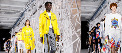 2019春夏,独具创意个性的意大利潮牌WOLF TOTEM带来的“藏狼”设计,汲取了藏传艺术灵感,将当季流行和藏族文化符号解构再重组。藏族的建筑艺术、文字与琳琅丰富的服饰元素,通过廓形设计、异材拼接、撞色钉珠、绚丽印花等当季流行手法,形成了这一季独具内涵的潮流风格。