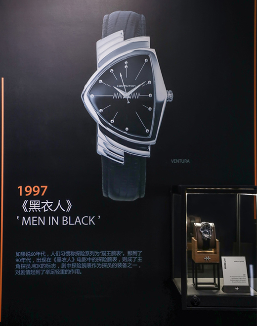 汉米尔顿探险系列腕表多次在《黑衣人》系列电影中出镜,与黑衣制服、墨镜和记忆消除棒一样,是黑衣探员必不可少的道具,该系列腕表设计大胆前卫、先锋时尚、领先时代,引人注目的外观与黑衣探员的形象相得益彰。