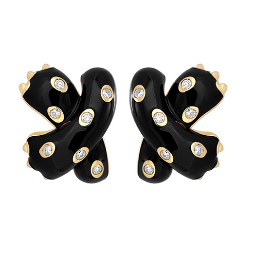 RED斐登Ombre Féline系列黑色漆面黄金镶嵌白钻耳环