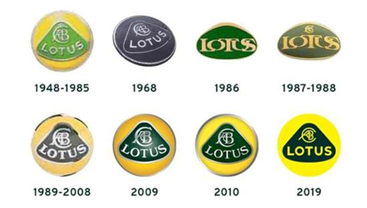 1986年,路特斯首次展示品牌标识,对比旧版本设计,新版本的徽标更加简约化,取消了图标的衬线,并且路特斯的名字不在弯曲,而是坐落在一条直线上。此外,标识背景依旧采用黄色,字母背景采用英国赛车上所呈现的绿色色调。