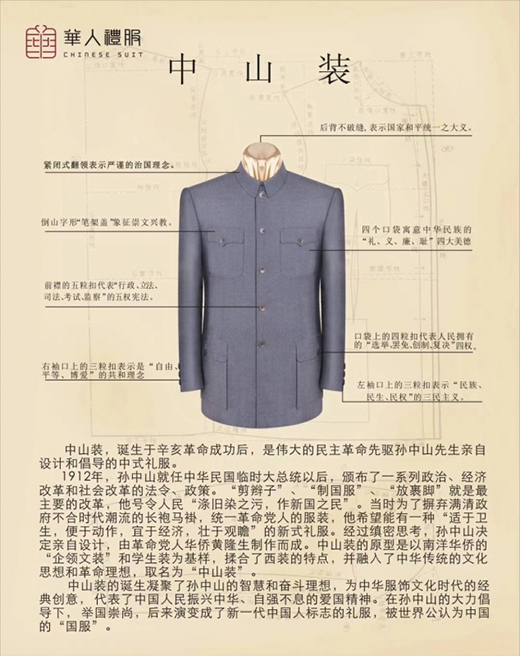 中山市华人礼服有限公司是一家中式礼服高级定制的现代化企业,其前身为成立于八十年代末的中山市新新洋服公司,现总部基地位于世纪伟人孙中山先生的故乡----广东省中山市。员工500多人,拥有先进的制衣设备1000多台,在北京,江苏、广州等有10家分公司和旗舰店,年生产能力为西装中山装80万套、衬衫50万件,唐装旗袍20万件。其产品以“中山装”为文化核心,以西装、唐装、旗袍等高级定制为主营业务;分为正装系列:国服类、礼服类和礼仪类,和休闲系列:商务类、文化类和体育类。
