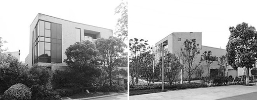 建筑立面采用两种不同颜色的石材进行拼接形成界面构成感,强化外立面与室内功能空间的对应关系。不同尺度和形式的开窗在立面上形成独特的节奏感,玻璃与石材结合形成强烈的虚实对比,大面积的半透明U玻通透了室内外空间。