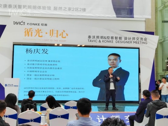 泰沃照明副总经理杨庆发作为主讲嘉宾,分享了泰沃照明最新推出的智能家居照明产品以及他在照明设计领域的心得和经验。他的演讲内容深入浅出,让现场的设计师们对智能照明的技术和应用有了更全面和深入的了解。