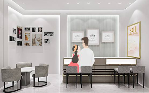 Darry Ring温州店的到来为温州带来一股浪漫的风潮,整个Darry Ring温州店以银白色的主色调进行装饰,营造高贵纯洁的氛围,给人以洁白无瑕的视觉效果,橱窗的玫瑰金更为其添加了时尚的气息。从此温州DR族们多了一个约会胜地,多了一个见证爱的地方。