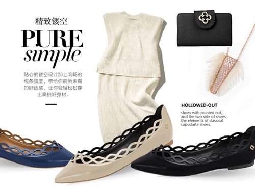 一件米色无袖衫配上同色针织裙,低调谦和的色系总是让人如沐春风,这大概也是米色所独有的温婉气质。这时,无论是拿上经典的Capodarte黑色钱包去买个咖啡,还是米色系小挂包去和闺蜜来一个下午茶,都显得相宜得体。最饶有韵味的亮点,当属这双舒适优雅平底鞋,它海浪般的波浪镂空花饰,显山不露水的表达着女人特有的精致。