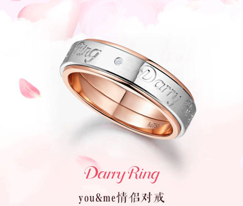 Darry Ring对戒You & Me完美结合情感和感官体验,以不同色的双层结婚,象征相爱的你和我,紧紧联系,互相环绕在一起。You & Me结婚戒指最大的特色,在于两个指环之间可以随意转动,彼此缱绻相连,每转动一次,就犹如每时每刻爱都环绕在你身边一样,提醒着爱与被爱的幸福,承诺此生永在一起。