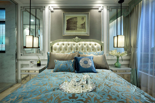 欧式古典建筑挂画与精炼的复古墙饰烘托出卧室卓尔不群的气质。在这高雅恬静的居室中,高贵的生活感受与艺术的生活气息沁入心脾,令人心醉。拥一袭优雅入梦,品味贵族般的典雅,体会愉心悦己的境界,享受悠然人生。