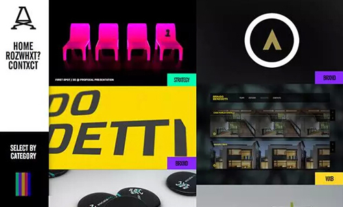 3、这个网站采用了Metro风格的界面设计,网站整体底色比较单调,以黑白灰色为主,这正是因为这样的底色,才更加凸显出网页需要表现的内容。每个矩阵右下角的小标签使用了一些荧光色的成分,让网站充满了现代感。